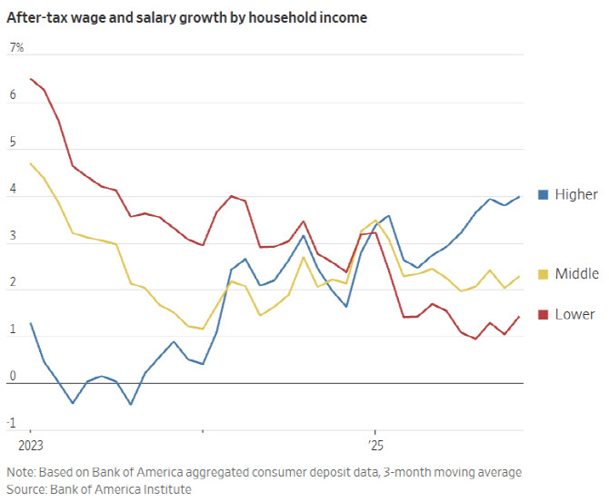 뱅크오브아메리카 인스티튜트의 테일러 보울리 이코노미스트는 “소비자와 비즈니스 환경 모두에서 두 가지 다른 경제적 현실을 보고 있다”고 말했다.