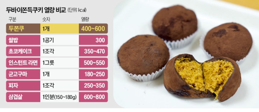 췌장 건강도 악화새해‘두바이 쫀득 쿠키(두쫀쿠)’열풍이 계속되고 있다.배달 주문을 유도하려 두쫀쿠를 미끼상품으로 내건 음식점이 늘면서 감자탕집,육회집에서 두쫀쿠를 샀다는‘구매 인증’까지 잇따르고 있다.헌혈 유도 답례품으로 등장했을 정도다.가게마다‘오픈런’행렬을 이끄는 유행 상품이지만 두쫀쿠는 새해 다이어트 계획을 세운 사람들에겐 낙제점인 음식이다.한 개 열량이 라면 한 봉지와 비슷한‘고칼로리 폭탄’이기 때문이다.전문가들은 치아 건강에도 악영향을 줄 수 있다고 경고했다.