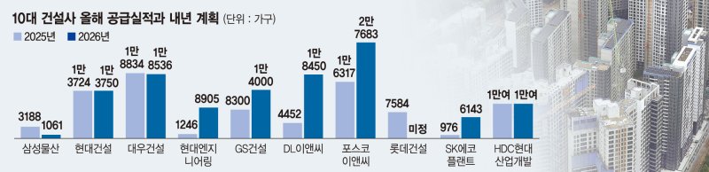 실적 기준으로 올해 주택 공급 1위를 차지한 대우건설은 2025년 수준과 비슷한 1만8536가구를 분양할 계획이다.현대건설도 올해 공급 실적과 비슷한 물량을 내년에 선보일 방침이다.