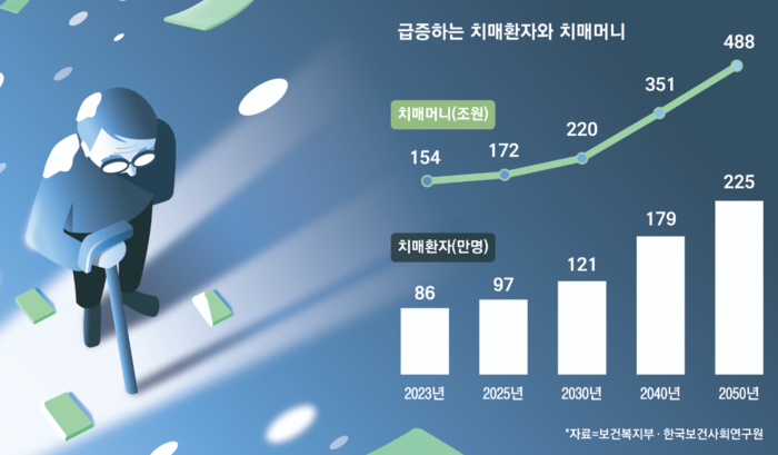치매 환자가 늘면서 이들이 보유한 이른바‘치매 머니’도 빠르게 증가하고 있다.저출산고령사회위원회에 따르면 국내 치매 머니는 올해 기준 172조원으로 국내총생산(GDP) 대비 6.9% 규모다.2050년에는 488조원에 달할 것으로 보인다.