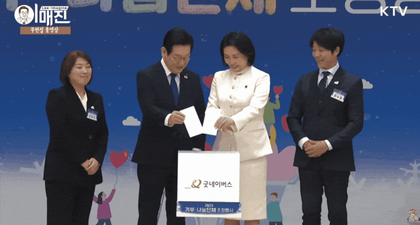 이 대통령과 김혜경 여사 내외는 행사에 참석한 각 단체 관계자들과 차례로 인사를 나누며 성금을 전달했는데,굿네이버스 성금 전달 과정에서 예상치 못한 해프닝이 벌어졌다.김 여사가 봉투를 들고 기념 촬영을 기다리던 것과 달리,이 대통령이 봉투를 바로 성금함에 넣어버린 것.