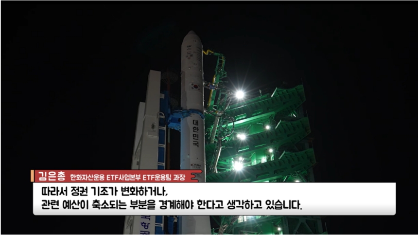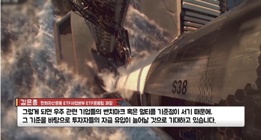 "저희 ETF의 가장 큰 특징은 대형주 쏠림을 막기 위해 10% 캡을 두고 있다는 점입니다.이런 대형주뿐 아니라 우주항공 관련 중소형 기업들도 많은 수혜를 볼 것으로 예상하고 있습니다.정부 주도의 올드 스페이스에서 민간 주도의 뉴스페이스로 가는 국면에서,저희 ETF가 적절한 투자의 대안처가 될 수 있다고 생각하고 있습니다."