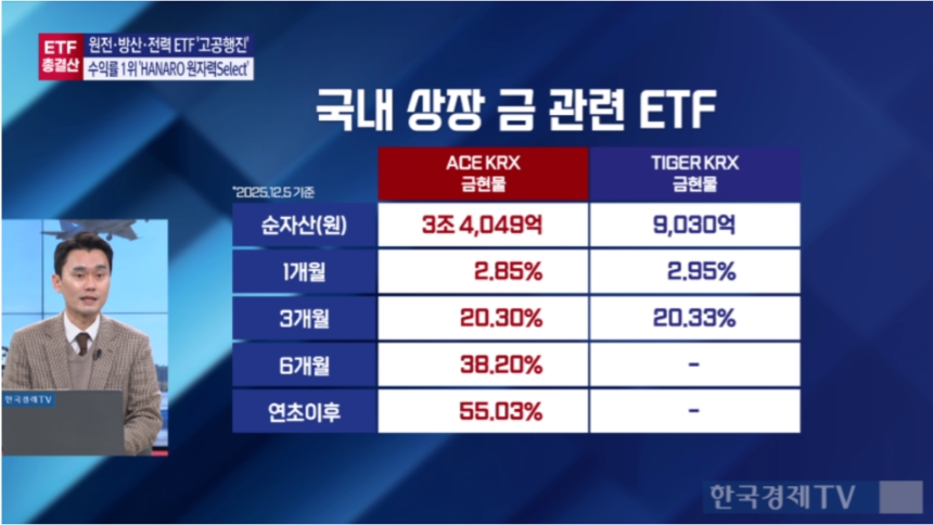 그래서 ACE KRX금현물 같은 경우에 대표적인 ETF인데 이 ETF가 2021년에 상장된 건데 올해만 3조 원 가까이 자금이 유입되면서 무려 3조 5천억원의 ETF가 됐고 TIGER KRX금현물이 동일한 지수를 가지고 올해 상장을 했는데 얘 같은 경우에도 벌써 1조 원에 가까운 자금이 몰리고 있는 상황이거든요.
