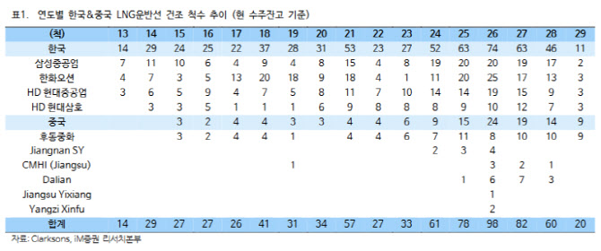 변 연구원은 “결론적으로 LNG운반선을 중심으로 한 한국 조선사의 기술력과 신뢰도는 여전히 독보적”이라며 “중국의 추격에도 불구하고 당분간 한국의 LNG운반선 시장 주도권은 유지될 것”이라고 강조했다.