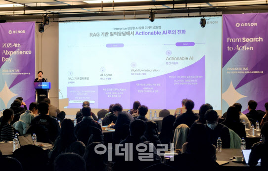 고 대표는 “현재 기업 AI 도입은 내부 데이터를 활용해 답변의 정확도를 높이는 RAG(검색 증강 생성)와 특정 기능을 수행하는‘AI 에이전트’가 보편적”이라며 “이제 AI와 사람간 협업이 용이하도록 통합 인터페이스를 구축하고 AI가 스스로 판단하고 업무를 완결하는‘액셔너블 AI’로 나아가야 할 때”라고 강조했다