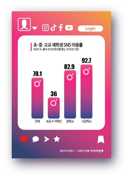 편집자주고등학생 10명 중 9명이 SNS를 이용하는 시대다.그러나 청소년의 사회관계망서비스(SNS) 이용을 둘러싼 사회적 대응은 여전히 부족하다.부모들은 SNS가 학교폭력과 범죄로 이어질까 불안해하지만,아이들은 빡빡한 일상 속에서 SNS 없이는 또래와의 관계 자체가 성립되지 않는다고 말한다.아시아경제는 이 간극을 짚고,우리 사회가 선택해야 할 해법을 모색한다.
