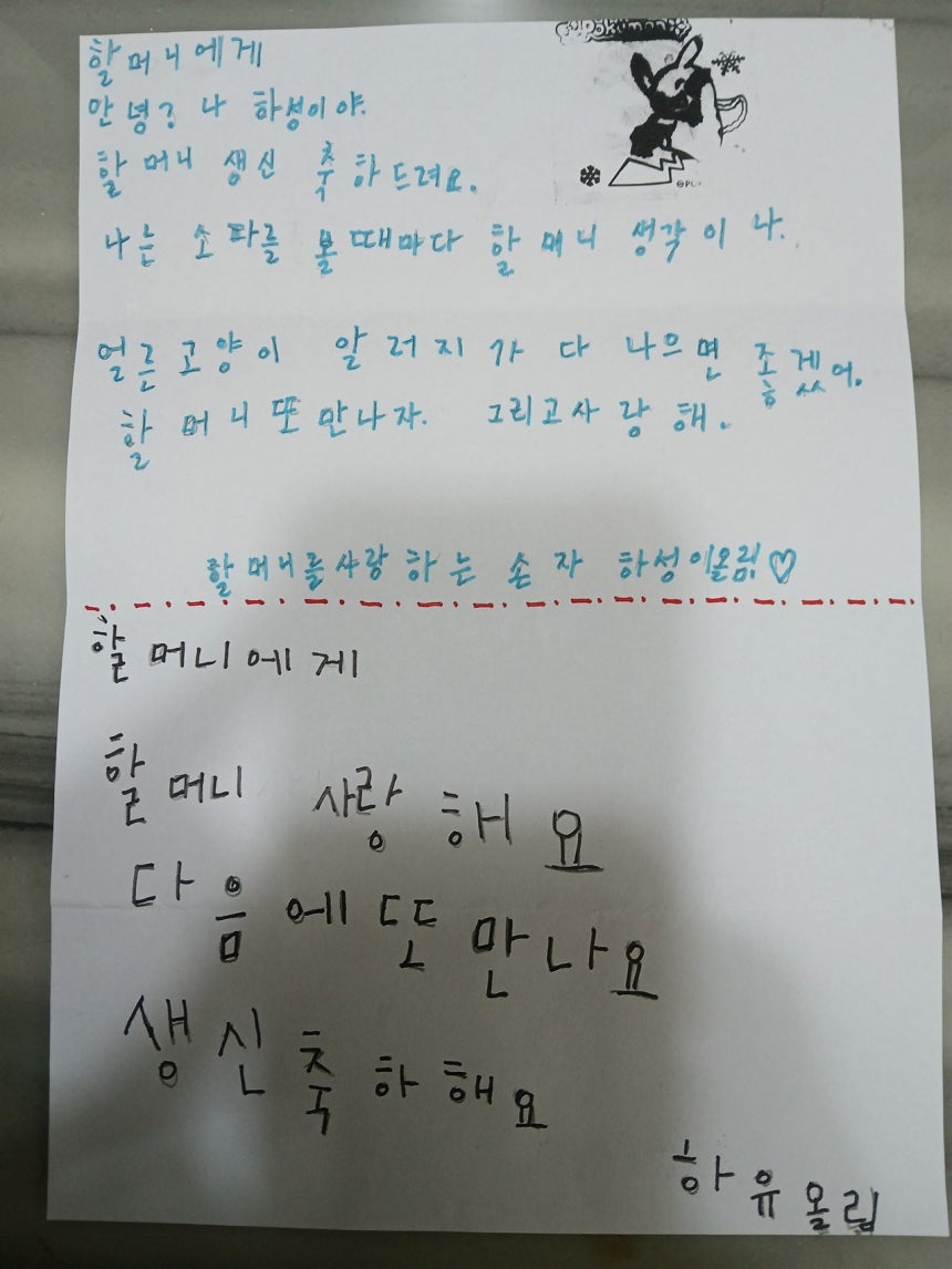 "할머니,보고 싶었어."