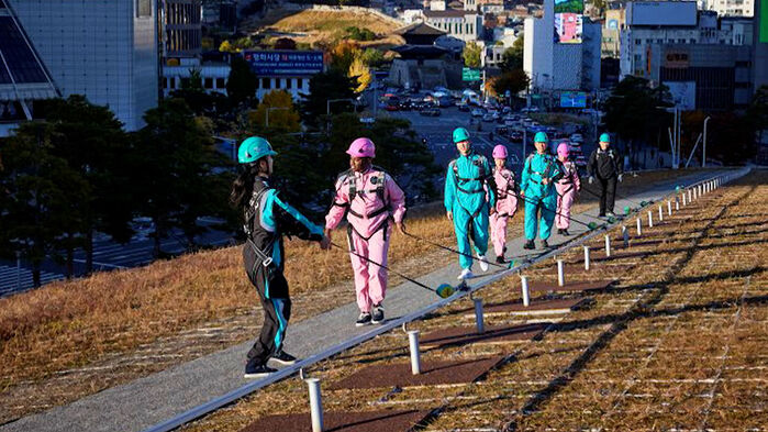 루프탑 투어는 안전 장비를 착용한 뒤에 DDP의 곡선형 지붕을 따라 걸으면서 서울의 지형과 역사,도시 구조를 360도 파노라마로 조망할 수 있는 프로그램입니다.
