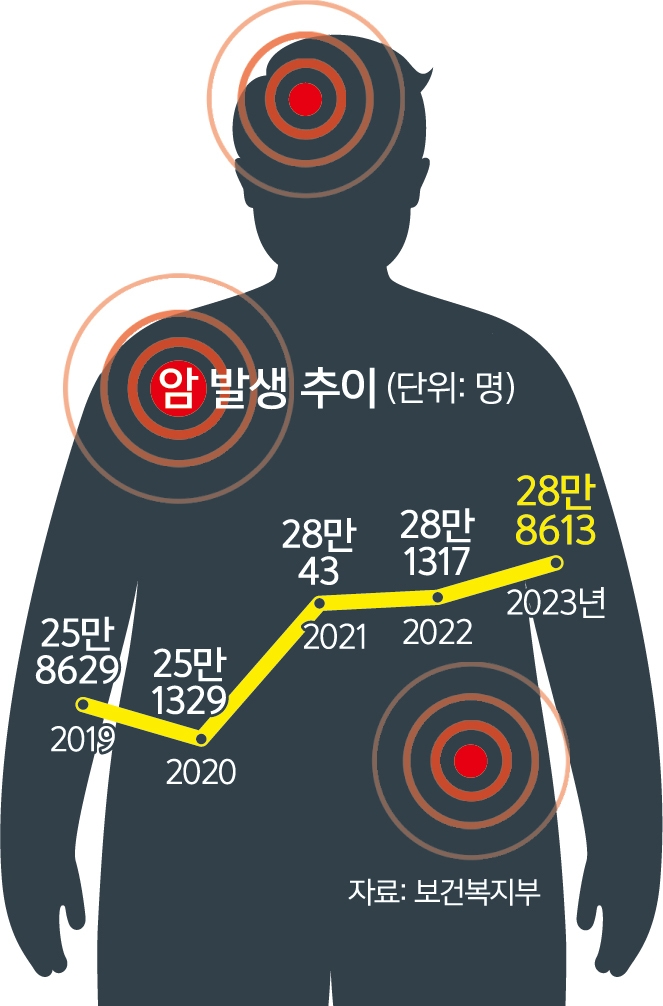 의료 기술 발전과 조기 검진 확대로 암 생존율은 꾸준히 향상되고 있다.최근 5년간(2019∼2023년) 진단받은 암 환자의 5년 상대생존율(일반인과 비교해 암 환자가 5년간 생존할 확률)은 73.7%였다.2001∼2005년에 진단받은 암 환자의 상대생존율(54.2%)과 비교해 19.5%포인트 높아졌다.