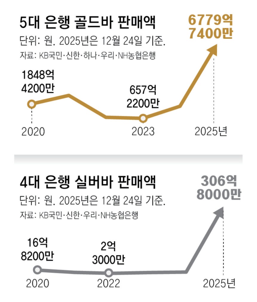 중량 정보를 공개하지 않는 NH농협을 제외한 4대 은행에서 골드바 판매 중량도 3745㎏으로 1년 새 두 배 넘게 뛰었다.