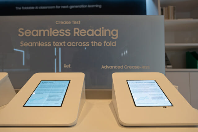 가장 눈길을 끈 건 차세대 폴더블 OLED 패널이었다.해당 패널의 주름 깊이는 2025년형 제품 대비 약 20% 얕아졌다.