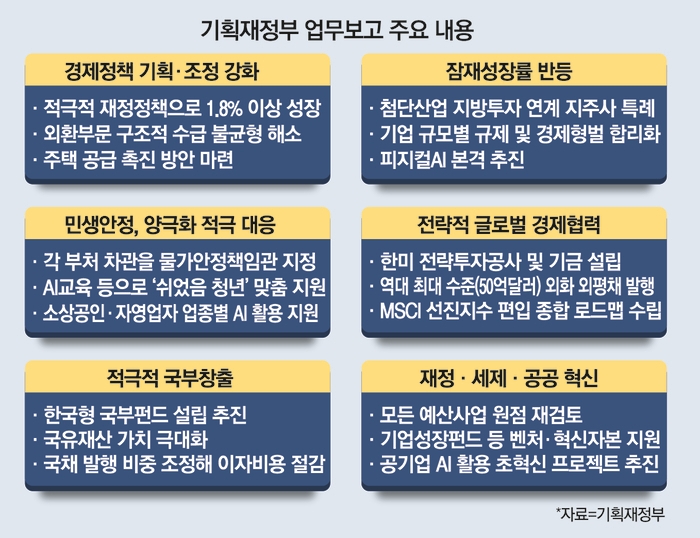 이날 대통령 업무보고 직후 열린 브리핑에서 구윤철 경제부총리 겸 기획재정부 장관은 “벤치마크 대상인 싱가포르 테마섹은 기본적으로 미래에 발전 가능성이 있는 산업에 대해 인수·합병(M&A)도 하고 투자도 하고 건물도 산다”며 “다양한 형태의 국가 부를 창출해 후세대에 넘겨주는 새로운 개념을 도입하는 것”이라고 한국형 국부펀드의 취지를 설명했다.