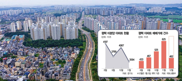 미분양 아파트 가구 수 감소와 함께 평택 아파트 매매 거래량도 증가하고 있다.국토교통부 실거래가 공개시스템에 따르면 8월 433건이었던 평택 아파트 매매거래 건수는 △9월 467건 △ 10월 525건을 기록한 뒤 △11월에 625건으로 증가했다.불과 3개월 사이 200건가량이 늘어난 수치다.이날 기준으로는 462건의 매매거래가 집계됐다.아직 신고기한이 20일 넘게 남은 점을 고려하면 12월 거래 건수도 11월과 비슷하거나 웃돌 것으로 예상된다.