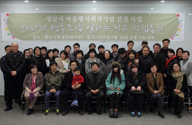 마침 그때 성남시에서 마을형 사회적기업 창업팀을 지원하는 공모사업을 하고 있었다.되든 안 되든 우선 도전하기로 했다.마감이 오후 6시인데 5시 50분까지 이름을 못 정하다가 간신히 '일하는학교'로 지원서를 냈다.직접 '일을 하며 배운다'와 '일에 대해 배운다'는 의미를 담아서.다행히 공모사업에 선정됐고 협동조합을 띄워 13년을 달려 왔다.