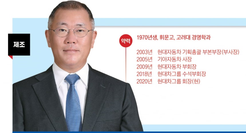 정의선 현대차그룹 회장은 비전과 숫자를 동시에 증명한 CEO다.취임 이후 회사 실적과 브랜드 가치,기업문화를 동시에 끌어올리며 경영 능력을 입증했다.정 회장 취임 후 5년간 현대차그룹 매출은 72% 늘었고 영업이익은 5배 뛰었다.글로벌 순위는 5위에서 3위로 상승했다.