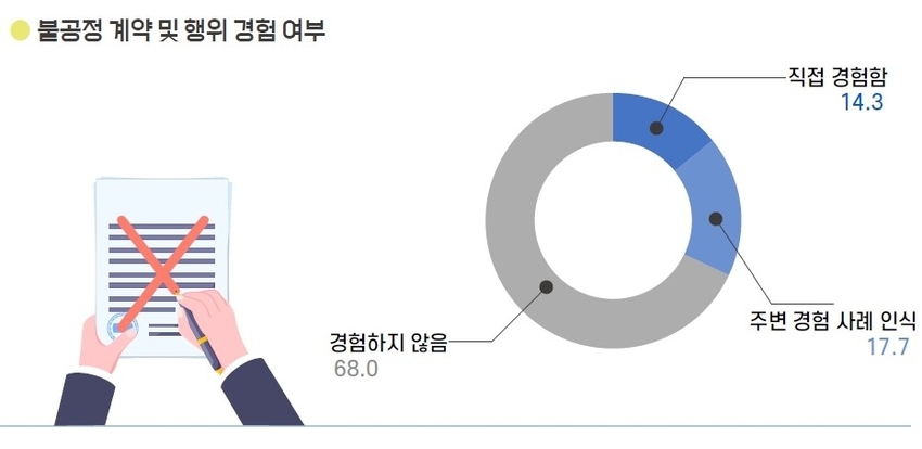 산업 성장세에 비해 웹툰 업계 계약 관행은 여전히 열악한 수준을 벗어나지 못했습니다.웹툰 종사자의 14.3%가 불공정 계약 및 행위를 직접 경험했다고 응답했습니다.주변 지인이 불공정 계약 및 행위를 경험한 사실을 알고 있다는 응답도 17.7%에 달했습니다.