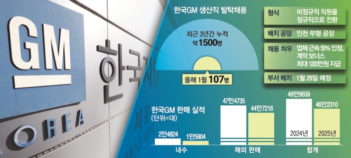 15일 재계에 따르면 한국GM은 이달 중 인천 부평 공장 입사를 목표로 비정규직 근로자 107명을 대상으로 생산직 재고용 절차인‘발탁 채용’을 진행하고 있다.이번 채용 대상은 근로자 지위 확인 소송을 제기한 비정규직 근로자 가운데 회사 내부 기준에 따라 적격 판정을 받은 인원이다.