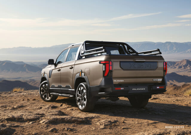 '무쏘'는 KGM의 디자인 철학 '파워드 바이 터프니스'를 바탕으로 정통 오프로드 스타일의 역동적이고 단단한 외관 디자인을 구현해 오리지널 픽업 아이덴티티를 한층 강화했다.