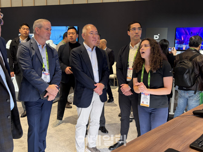 정 회장은 LVCC에 마련된 두산,현대차그룹,퀄컴,LG전자 순으로 전시장을 각 10여분간 둘러봤다.이후 윈호텔에 마련된 삼성전자 전시장에 들러 노태문 삼성전자 대표와 환담했다.