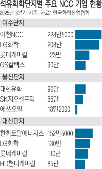 울산 산단에선 SK지오센트릭과 대한유화·에쓰오일이‘단계적 감축안’을 제출한 것으로 전해졌다.연간 180만t의 에틸렌을 생산할 에쓰오일‘샤힌 프로젝트’가 가동되고(2027년 초 예상) 난 뒤 시장 상황 등을 종합해 감축 시점과 규모 등을 조율한다는 것이다.