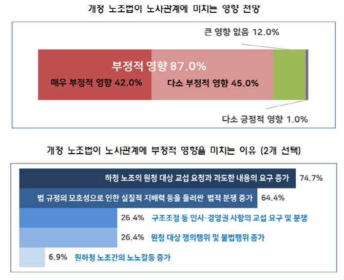 기업 42% "노사관계에 매우 부정적 영향 미칠것"