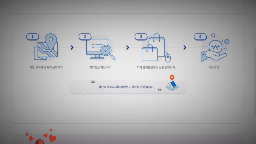 지자체들이 지역 특산품을 답례품으로 제공할 수 있잖아요?그래서 해당 지역 경제도 활성화할 수 있고요.또,기부를 한 이들의 "답례품을 고르는 재미가 있다."라는 후기가 있기도 합니다.