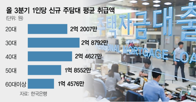 올 3분기 차주 1인당 주택담보대출 신규 취급액이 역대 최고 수준으로 불어났다.수도권에 사는 30대가 일명‘영끌’대출로 주택을 사들인 것으로 분석됐다.