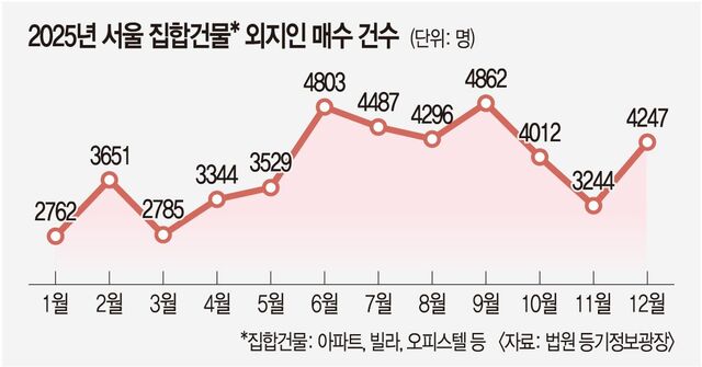 지난해는 6·27,10·15 대책 등 강력한 수요 억제 정책이 연이어 나오며 대출 한도가 줄고 실거주 의무가 강해졌다.그럼에도 서울 집값이 상승세를 보이자 외지인들이 매수를 이어간 것이다.