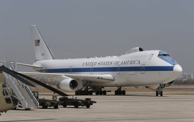 12일 뉴욕포스트,LA타임스 등에 따르면 미국 공군의 공중 지휘통제기‘E-4B 나이트워치’가 지난 8일 LA국제공항(LAX)에 착륙했다.