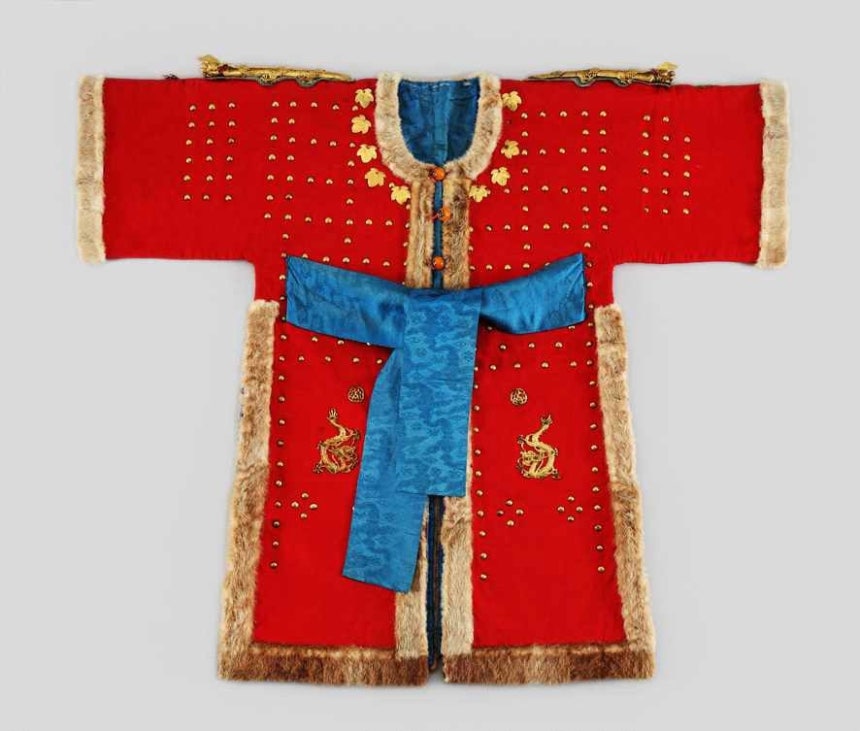 갑옷은 조선후기의 전형적인 두루마기형 전갑 형식을 취하고 있으며 소매가 짧고 양 옆이 트여 활동하기 편리하게 돼 있다.갑옷의 겉감에 둥근 두정 장식과 금속으로 만든 사조룡,호랑이,여의주 등을 붙여 장식했으며,양 어깨에 부착한 용 형태의 견철은 네 마디로 나뉜 몸에 용의 입과 혀가 연동되도록 정교하게 제작됐다.