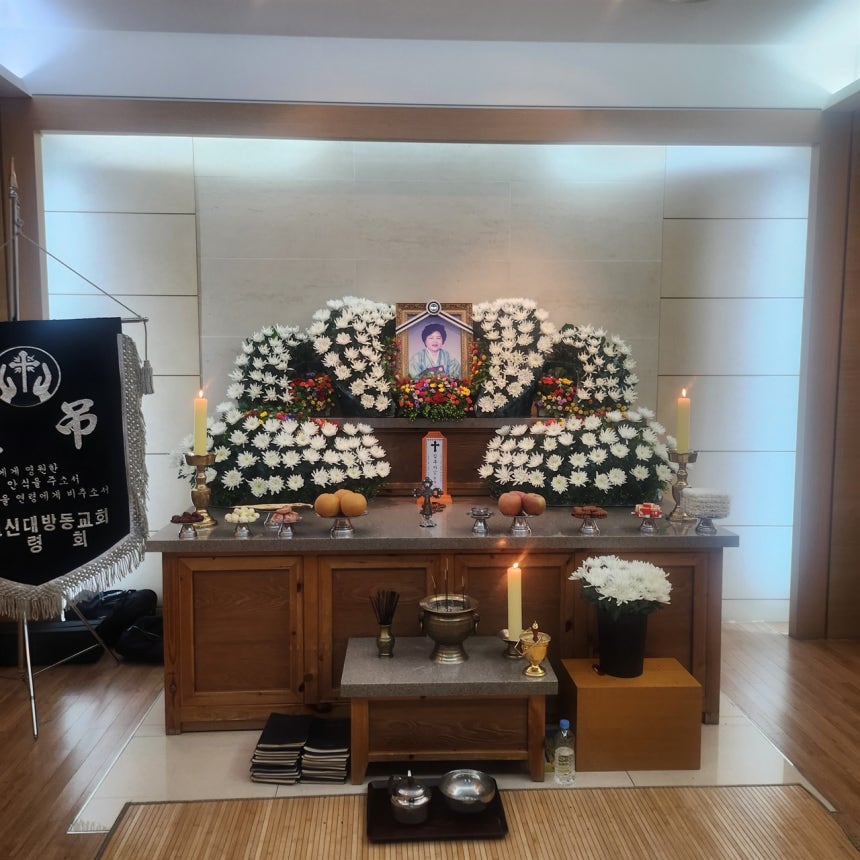1년 사이 달라진 장례문화도 알게 되었다.요즘은 꽃장식을 간소하게 하는 것이 트렌드라고 했다.우리는 적당한 크기의 2단 장식을 선택하고,대신 어머니의 수의를 예쁜 것으로 준비했다.