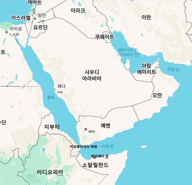 홍해~아덴만 잇는 폭 26㎞ 해협 사이에 두고 후티 반군의 예멘과 마주해