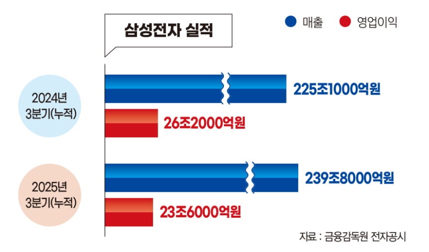 D램 사업은 회복을 넘어‘슈퍼사이클’로 진입했다는 분석이 나온다.HBM으로 메모리 제조사들의 생산능력이 집중되면서 범용 D램과 낸드플래시 가격이 오르기 시작하자 수익성이 급등한 것이다.그 결과 삼성전자 반도체는 3분기 메모리 1위 왕좌를 탈환했다.