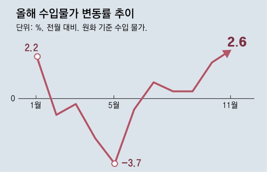 유가 떨어졌지만 환율 고공행진수입물가지수 5개월 연속 상승