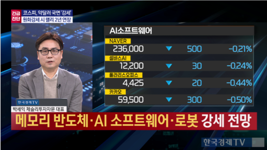 - 성장주 가운데 로봇이 가장 큰 테마로 부각,메모리 반도체·AI 소프트웨어·로봇 강세 내년 초까지 이어질 것이라고 전망됨.