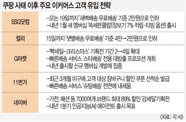 시장에서는 쿠팡 답습 양상이 뚜렷하다.14일 유통업계에 따르면 새벽배송을 해 오던 컬리와 SSG닷컴은 각각 15일과 19일까지 새벽배송 무료 기준을 4만원에서 2만원으로 낮췄다.다른 이커머스업체들도 빠른 배송을 전면에 내세우는 마케팅에 열을 올리고 있다.쿠팡의 속도 전략이 시장의 표준으로 굳어졌음을 보여주는 대목이다.