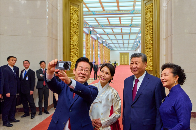 이재명 대통령이 중국을 국빈 방문한 가운데 5일 시진핑 중국 국가주석과 90분간 정상회담을 갖고 2시간 동안 만찬을 함께 했다.이 대통령이 시진핑 주석으로부터 선물 받은 샤오미 스마트폰으로 함께 '셀카'를 찍는 등 친밀한 분위기가 연출됐다.