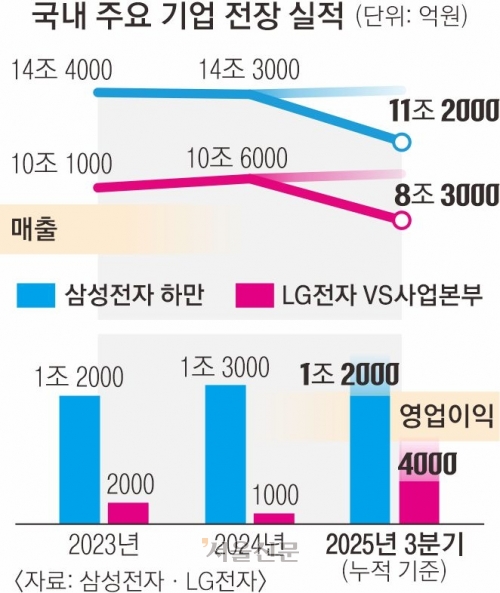 글로벌 수요 침체와 중국의 저가 공세로 가전 시장의 성장세가 주춤한 가운데 국내 양강인 삼성전자와 LG전자가 미래 먹거리인‘전장’(차량용 전자·전기장비) 분야에서 사업 확장에 적극 나서고 있다.다만,중국발 저가 공세로 유럽 전장 업체들이 구조조정에 들어갈 만큼 경쟁이 치열해져 새해 글로벌 시장에서 두 기업의 확장세에 걸림돌이 될 수 있다.
