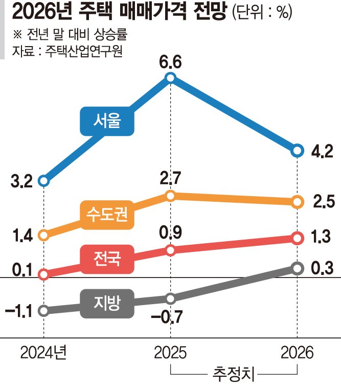 23일 주택산업연구원은 대한상공회의소에서 발표한 '2026년 주택시장 전망과 정책방향'에서 내년 서울 주택 매매가격이 4.2% 상승할 것으로 전망했다.전국은 1.3%,카지노 2 누누수도권 2.5%,지방도 0.3% 상승할 것으로 봤다.지난해 9월 시작된 미국 기준금리 인하로 인한 금리 하락과 지난 4년간 누적된 60만 가구의 착공물량 부족 등으로 올해의 상승 기조가 내년에도 이어질 것이라는 분석이다.