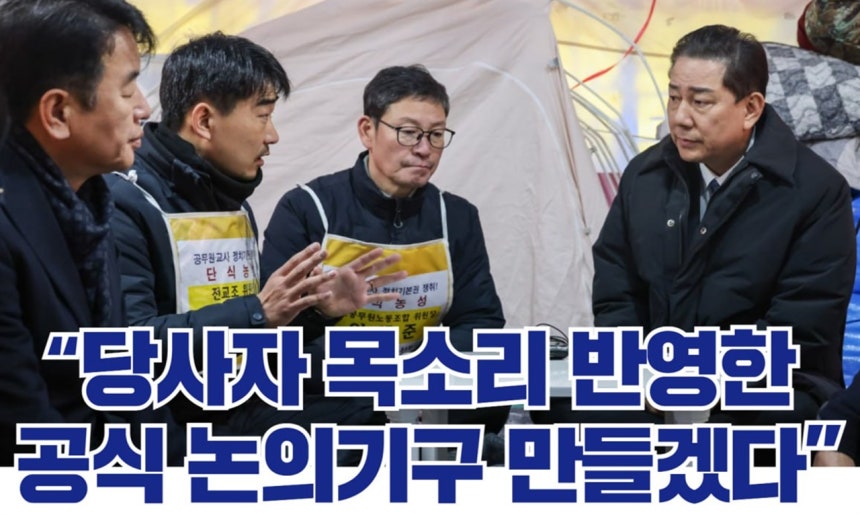 24일 오후,전교조와 전공노 위원장은 국회 소통관에서 기자회견을 열고 "전교조와 전공노는 더 이상 말로만 요구할 수 없다는 판단에 따라 지난 12월 18일 국회 앞에서 단식과 철야농성이라는 극한의 투쟁에 돌입했다"라면서 "단식 6일 차였던 지난 23일,민주당 지도부가 농성장을 방문해 공무원·교사 정치기본권 보장을 위한 당 차원의 공식 논의 테이블을 구성하겠다는 입장을 공개적으로 밝혔다.이는 그동안 상임위별로 흩어져 지연되어 온 입법 논의를 당 차원에서 책임 있게 정리하겠다는 약속"이라고 밝혔다.그러면서 "이는 정치기본권 문제를 더 이상 미룰 수 없는 과제로 인정한 중요한 전환점"이라고도 평가했다.