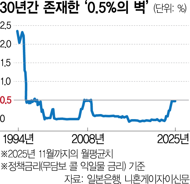 시장의 관심은 이미 추가 인상 시점으로 옮겨가고 있다.닛케이 조사에서 다음 인상 시기를‘내년 7월’로 전망한다는 답변이 38%로 가장 많았다.엔저와 정부의 경기 부양책이 인플레이션을 자극할 수 있는 만큼 반년에 한 번씩 인상이 이어질 것이라는 관측이 나온다.하야카와 히데오 전 일본은행 이사는 블룸버그 인터뷰에서 반년 주기 인상을 통해 “2027년 상반기에는 최종 금리가 1.5%에 도달할 것”이라고 예상했다.이는 일본 금리가 제로(0) 영역을 완전히 벗어나 1%대 중반에 안착한다는 의미로 엔화 가치에도 구조적인 변화(엔고)를 불러오게 된다.