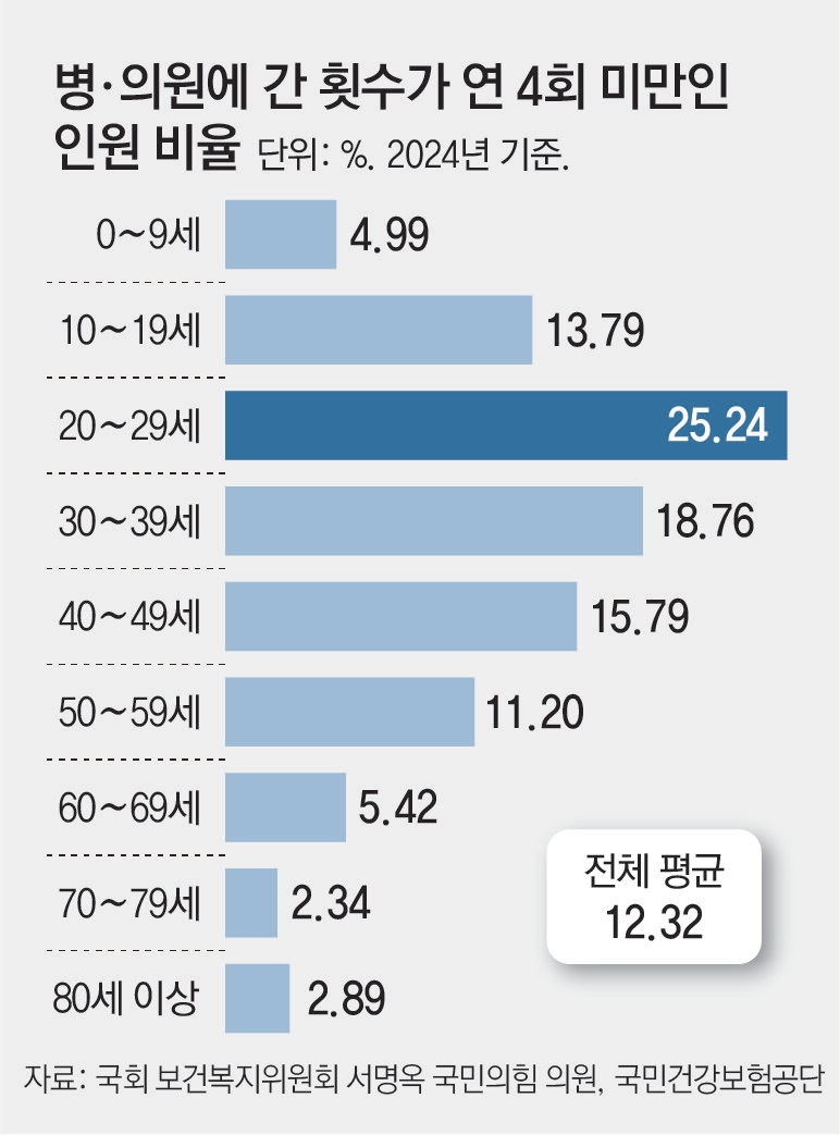 20∼40대 20% 年4회미만 병원에“건보료 내고 혜택 없다” 일각 불만에