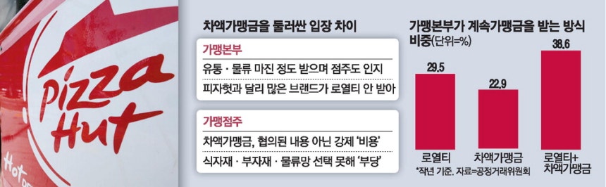 작년 공정거래위원회 조사에 따르면 계속가맹금으로 로열티만 받는 가맹본부 비율이 29.5%,차액가맹금만 받는 비율은 22.9%였다.로열티와 차액가맹금을 같이 받는 비율은 38.6%로 10곳 중 4곳은 피자헛과 비슷한 구조라 여러 업체로 소송이 확대될 수 있다는 전망도 나온다.