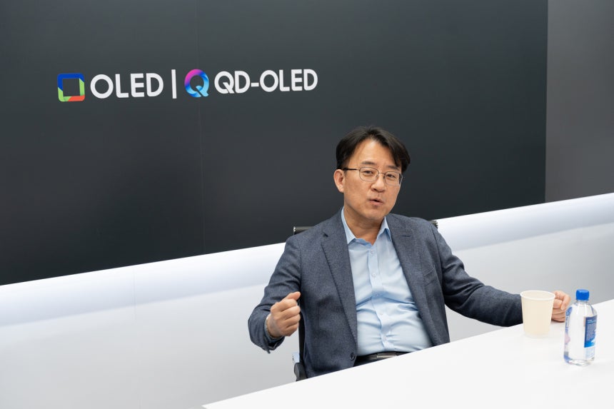 이청 삼성디스플레이 사장이 CES 2026이 진행 중인 지난 7일(현지시간) 미국 라스베이거스 앙코르 앳 윈 호텔에 마련된 삼성디스플레이 전시관에서 인터뷰를 갖고 있다.[삼성디스플레이 제공]