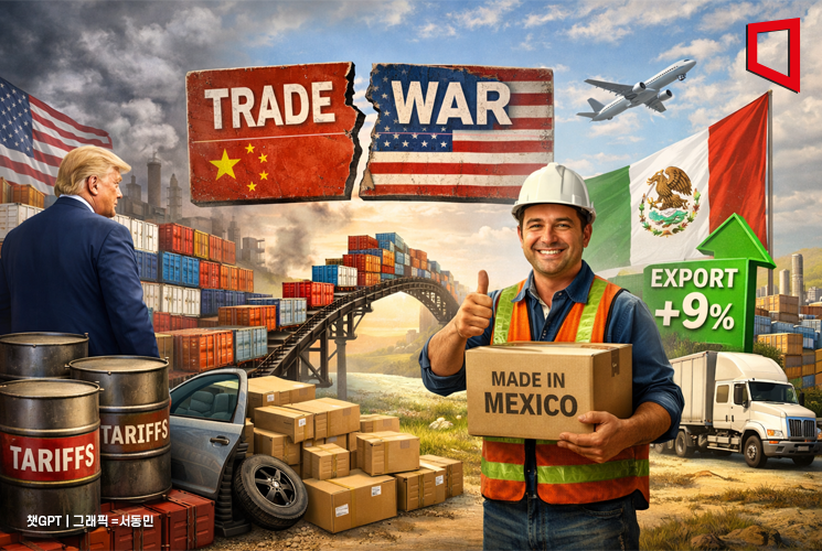 "통합 수준 너무 높아 폐기하기도 어려워"도널드 트럼프 미국 대통령이 올해 전 세계를 상대로 쏘아 올린 관세 전쟁에서 의외의 승자가 멕시코라는 분석이 나왔다.연합뉴스는 지난 26일(현지시간) 월스트리트저널(WSJ)을 인용해 "미국·멕시코·캐나다무역협정(USMCA) 덕분에 멕시코 상품에 부과되는 실제 관세율이 경쟁국보다 상대적으로 낮게 유지됐으며,미국 고율 관세의 표적이 된 중국산을 멕시코산이 일부 대체하면서 대미 수출은 오히려 증가하는 결과가 이어졌다"고 보도했다.