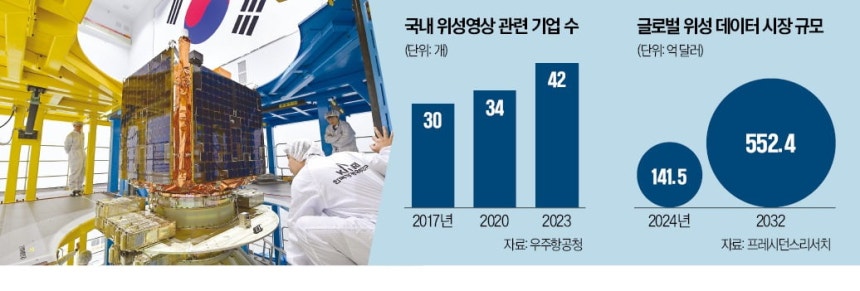 다만 기술 개발 못지않게 위성영상의 수집과 유통,판매를 뒷받침할 법제 정비가 과제로 지적된다.현행 우주 관련 법령은 민간 우주 데이터 활용에 관한 내용이 공백에 가깝다고 업계는 지적한다.우주개발진흥법은 위성정보 보급·활용 대상을‘기본계획에 따라 개발된 인공위성’으로 한정하고 있다.민간이 개발한 위성은 제도권 밖에 놓인 셈이다.재난·재해 관측 등 공공 목적에 따라 발사된 위성은 해외 판매 등을 추진하고 싶어도 국내 정보당국의‘보안 규정’을 이유로 해상도를 낮춰야 한다.반면 미국은 2020년 민간 원격탐사 허가 규정을 전면 개정해 상업적 영상 판매 절차를 간소화했다.독일은 위성데이터보안법을 통해 고해상도 영상 데이터의 수출과 이용을 투명하게 관리하고 있다.