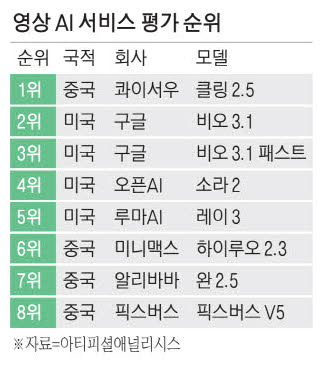 최근 중국 영상 생성 인공지능(AI)의 약진이 두드러지고 있다.그간 영상 AI 서비스 분야에선 미국 모델에 뒤처진다는 평가를 받아왔던 중국 진영이 최근 성능과 가격 경쟁력을 앞세워 존재감을 키우면서,영상 AI에서도 미·중 간 경쟁 양상이 심화되는 모양새다.