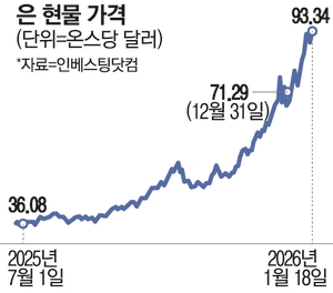 19일 인베스팅닷컴에 따르면 전날 기준 은 현물 가격은 온스당 93.34달러로 거래를 마치며 종가 기준 처음으로 93달러 선을 돌파했다.지난해 말 71.29달러에 마감했던 은 현물 가격은 올해 들어서만 30.9% 급등했다.