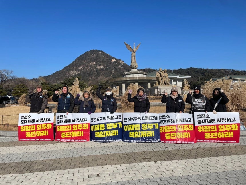 한전KPS 비정규직 노동자들은 직접고용과 위험의 외주화 중단을 요구하며 지난 2일 기준 45일째 농성을 이어가고 있다.노조에 따르면 지난해 6월 태안화력에서 김충현 노동자가 홀로 선반 작업을 하다 숨지는 사고가 발생한 이후 대책위원회가 꾸려지고 정부협의체도 구성됐지만,위험의 외주화는 여전히 중단되지 않았다.결국 노동자들은 거리로 나설 수밖에 없었다는 설명이다.