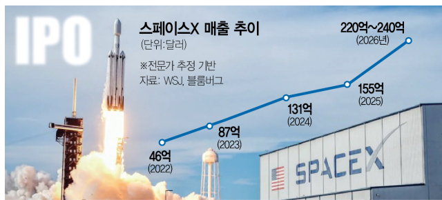 9일(현지 시간) 블룸버그통신은 소식통들을 인용해 스페이스X 경영진이 이르면 2026년 중후반을 목표로 상장을 추진하고 있다고 보도했다.다만 시장 변동성 등 외부 요인에 따라 일정은 조정될 가능성이 있는 것으로 전해졌다.스페이스X는 이번 IPO에서 기업가치를 1조 5000억 달러로 평가받는 것을 목표로 하고 있다.현재 스페이스X가 약 8000억 달러(약 1176조 원)로 추정되고 있다는 점을 감안하면 1년 안에 몸값이 두 배 가까이 뛰는 셈이다.테슬라의 현 시가총액(약 1조 4000억 달러)을 넘어서는 수준이라는 점도 주목을 끈다.